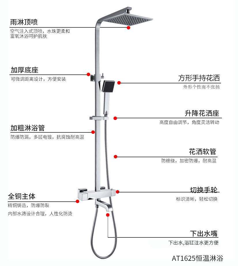 AT1625 3功能恒温淋浴花洒